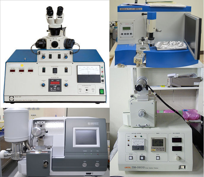 設備概要 | 金属、半導体、セラミックス、高分子材料などをTEM/SEMの電子顕微鏡試料に加工する装置群 | |||