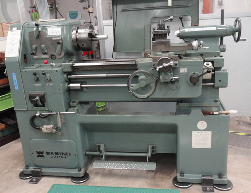 設備概要 | 円柱状の材料を回して,それにバイトと呼ばれる刃ものを当てて,材料を削る工作機械、最大工作物:φ360×550、回転数:83~1800rpm(6段) | |||
