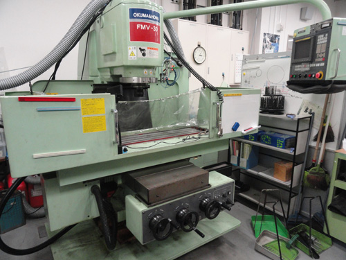 設備概要 | 刃物を回転させて工作物を動かして切削する工作機械、NC立て型、テーブル移動量:X=720、Y=320、Z=410、工具回転数:25~2500rpm(無段) | |||